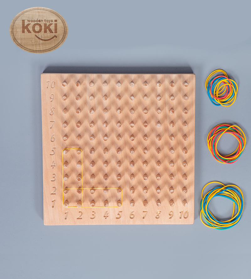 Ce Géoboard en bois est équipé de 100 chevilles totales et a des numéros gravés le long du côté gauche et du bas. Il peut être utilisé pour enseigner aux enfants la table de myltiplication, en rassemblant rapidement des chevilles à l’intérieur des élastiques pour montrer n’importe quelle combinaison de multiplication de 1×1 à 10×10. Vous pouvez séparer chaque groupe dans son propre élastique ou combiner tous les groupes en un seul. C’est une excellente façon de démontrer ce qui se passe réellement pendant le processus de multiplication. D’autres utilisations, la mise en place comme un graphique de barre ou de ligne, montrant le pourcentage, et le calcul de tous les processus mathématiques – division, multiplication, addition, et soustraction. Et pour une approche créative, utilisez-le comme n’importe quel autre Géoboard pour faire des formes, des lettres, des chiffres et des images en utilisant les élastiques pour s’enrouler autour des chevilles. Ce Géoboard est livré avec un sachet d’élastiques de différentes tailles.